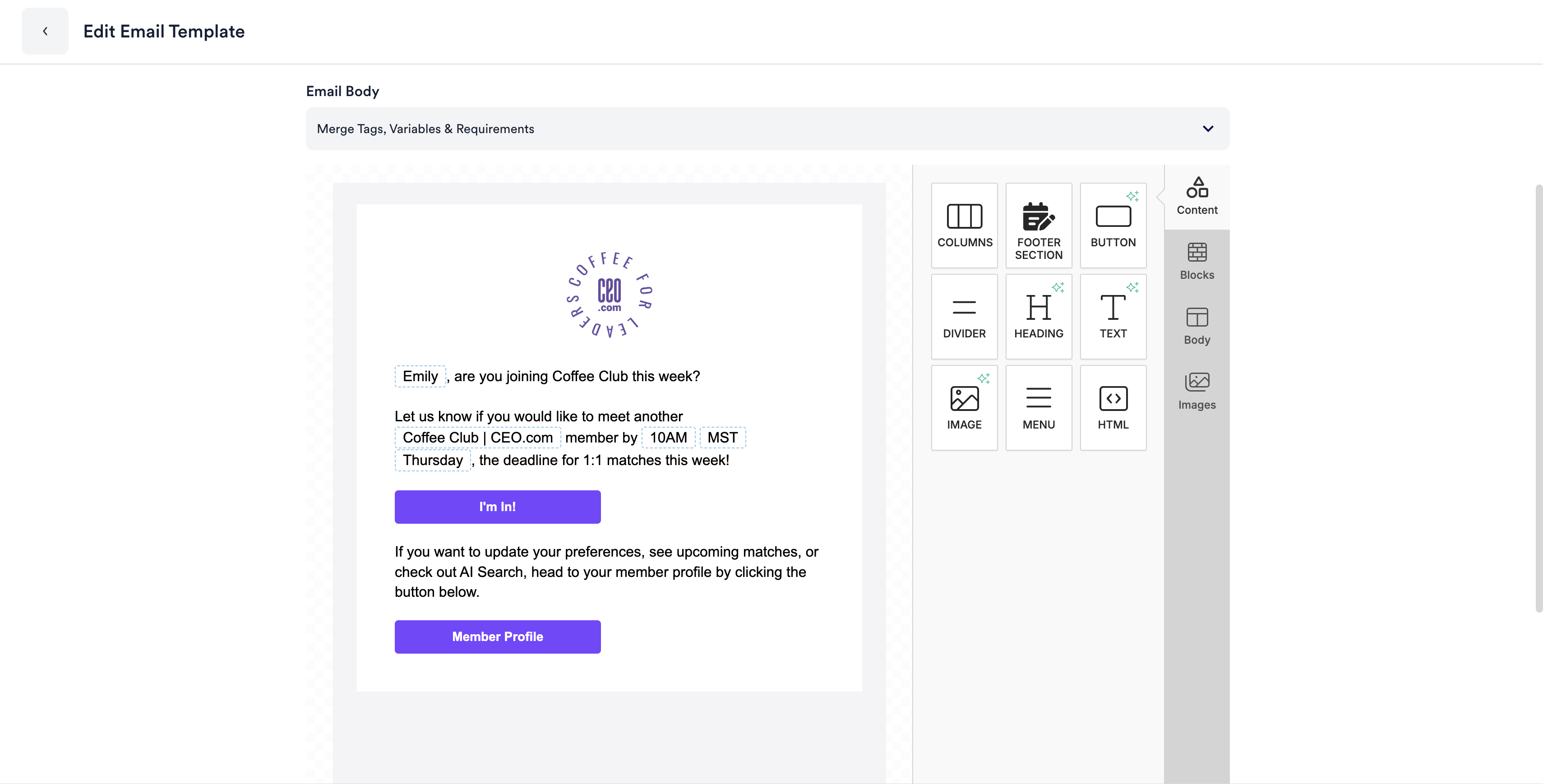 Members have two options: they can either request an intro by sending a message and proposing a time to chat, or they can request more information before deciding to connect.