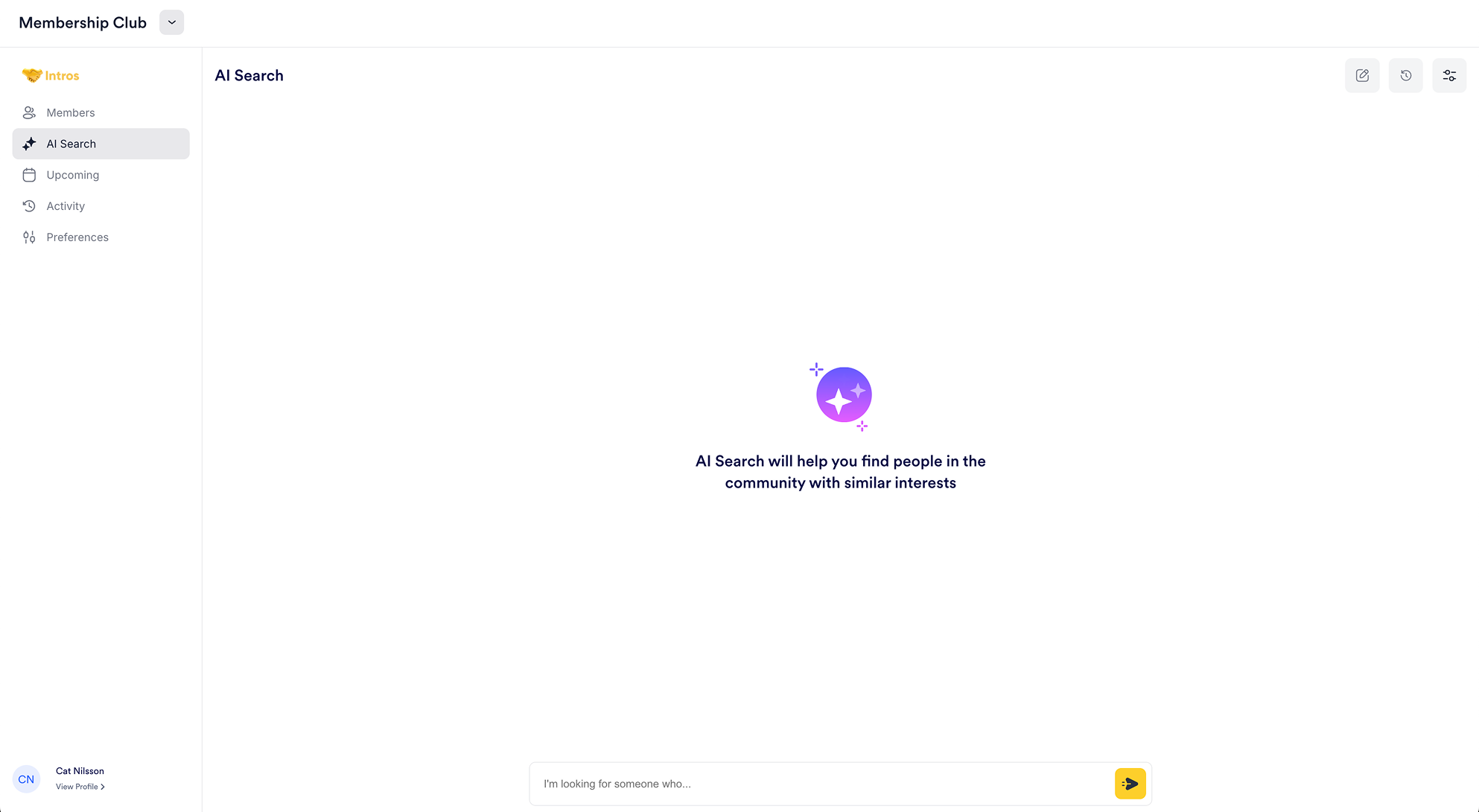 Note: You can click the toggle icon on the right side of the page and select “Disabled” if you prefer not to have AI Search, preventing members from using AI to find other members.